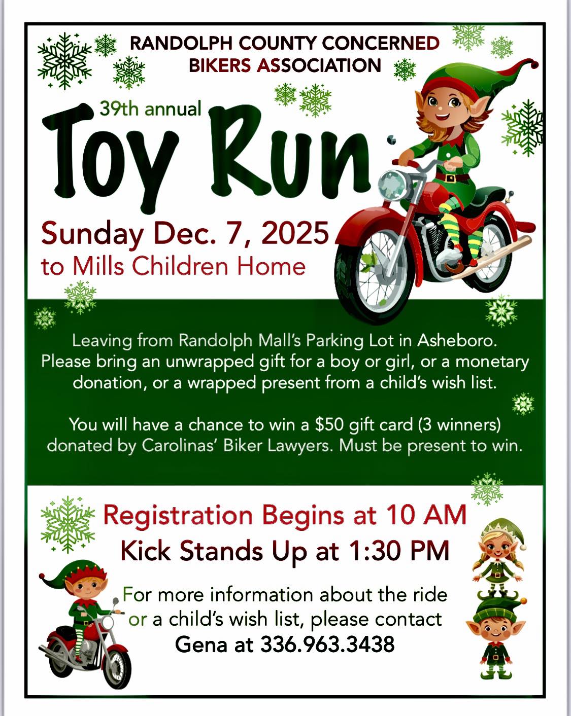 Randolph Mall 1437 E Dixie Dr, Asheboro, NC, United StatesOne of the largest Toy Runs in NC. Meeting at Randolph Mall in Asheboro, NC starting at 10am. Leaving at
